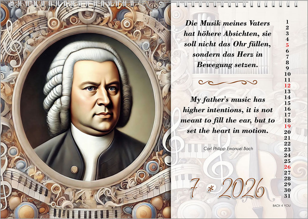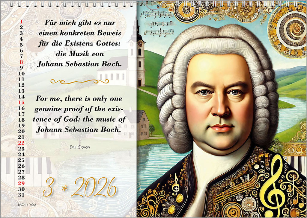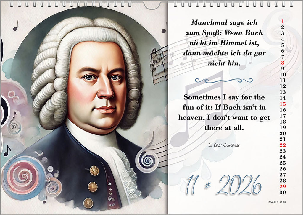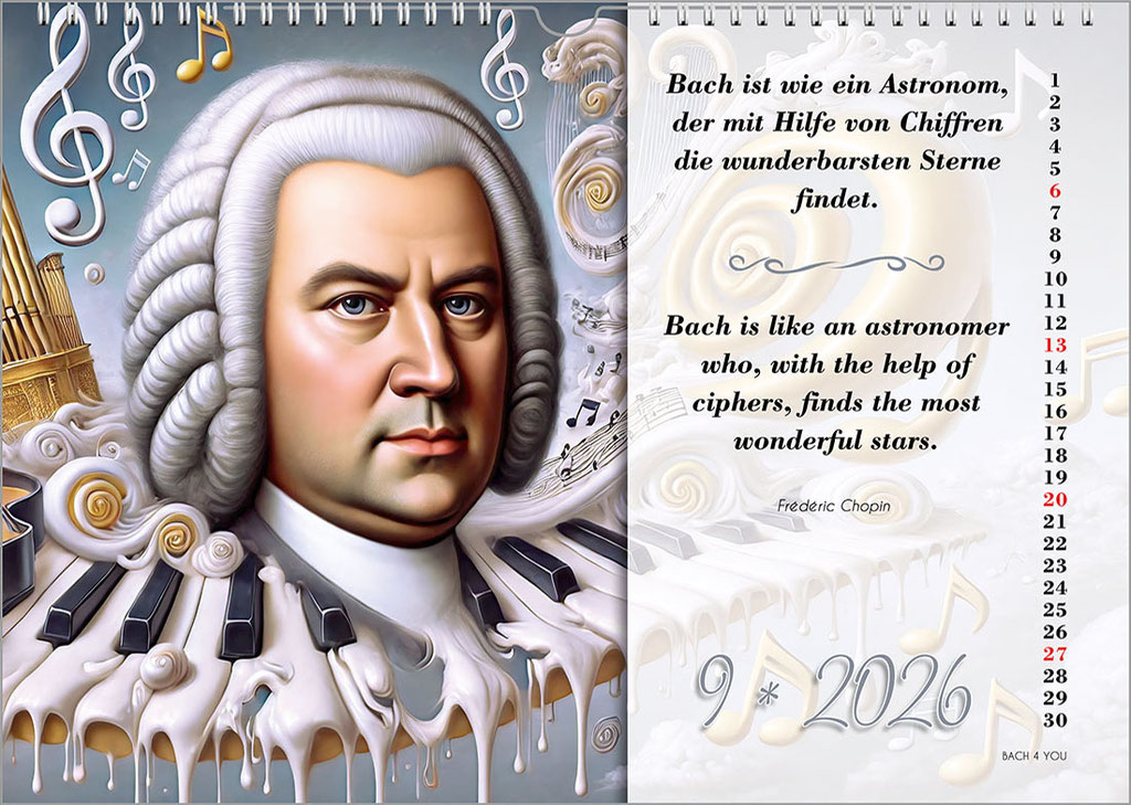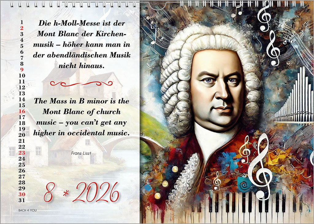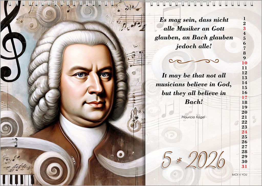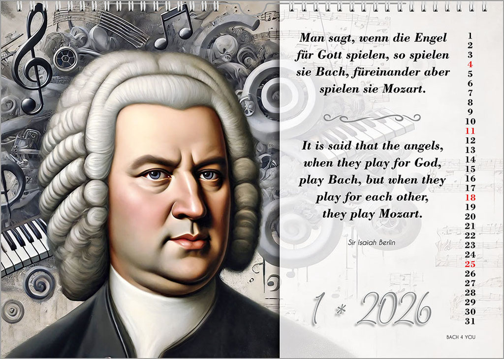 60 music calendars, composers calendars, pipe organ calendars, Bach calendars.